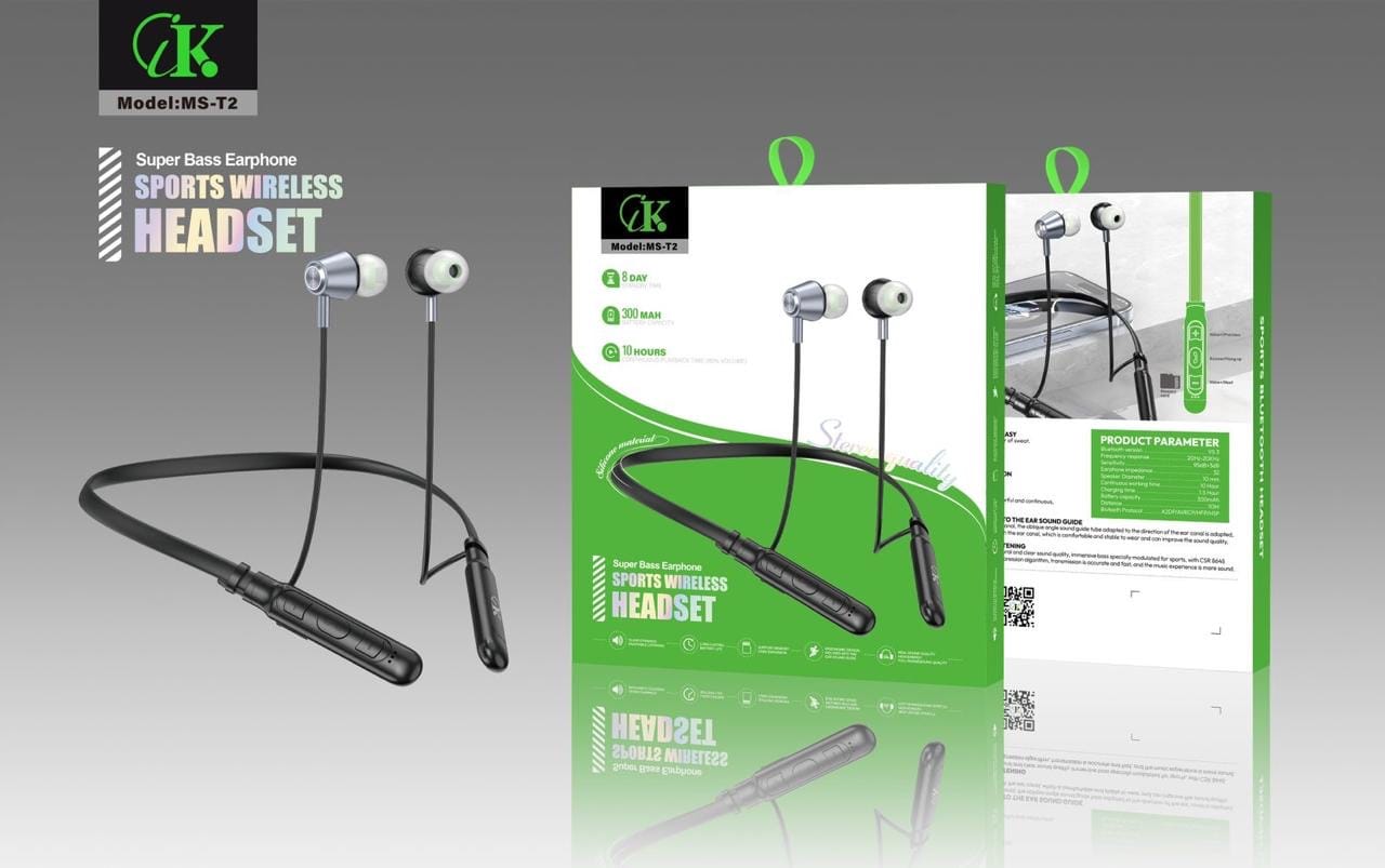 Écouteurs Bluetooth Sport CK MS-T2 – Super Bass, 10h Autonomie
