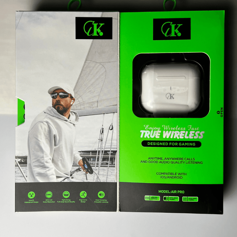 Les CIK Air Pro sont des écouteurs Bluetooth sans fil nouvelle génération, spécialement conçus pour une utilisation polyvalente : appels, musique, gaming ou sport. Grâce à leur connectivité Bluetooth 5.3 stable, leur autonomie confortable et leurs accessoires complets, ils offrent une liberté totale et un excellent rapport qualité/prix.