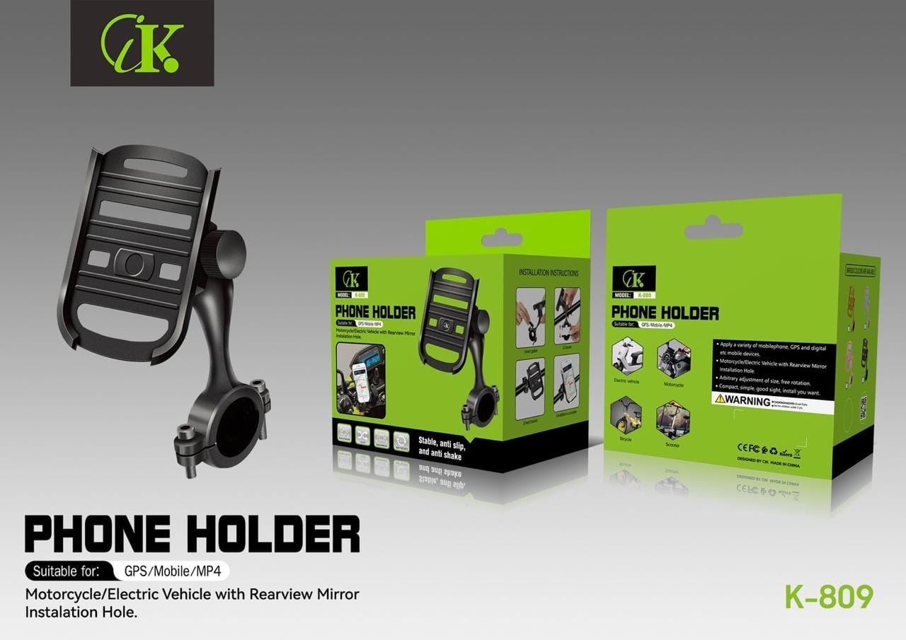 Support Téléphone Moto CK K-809 – Fixation Rétroviseur Antidérapant